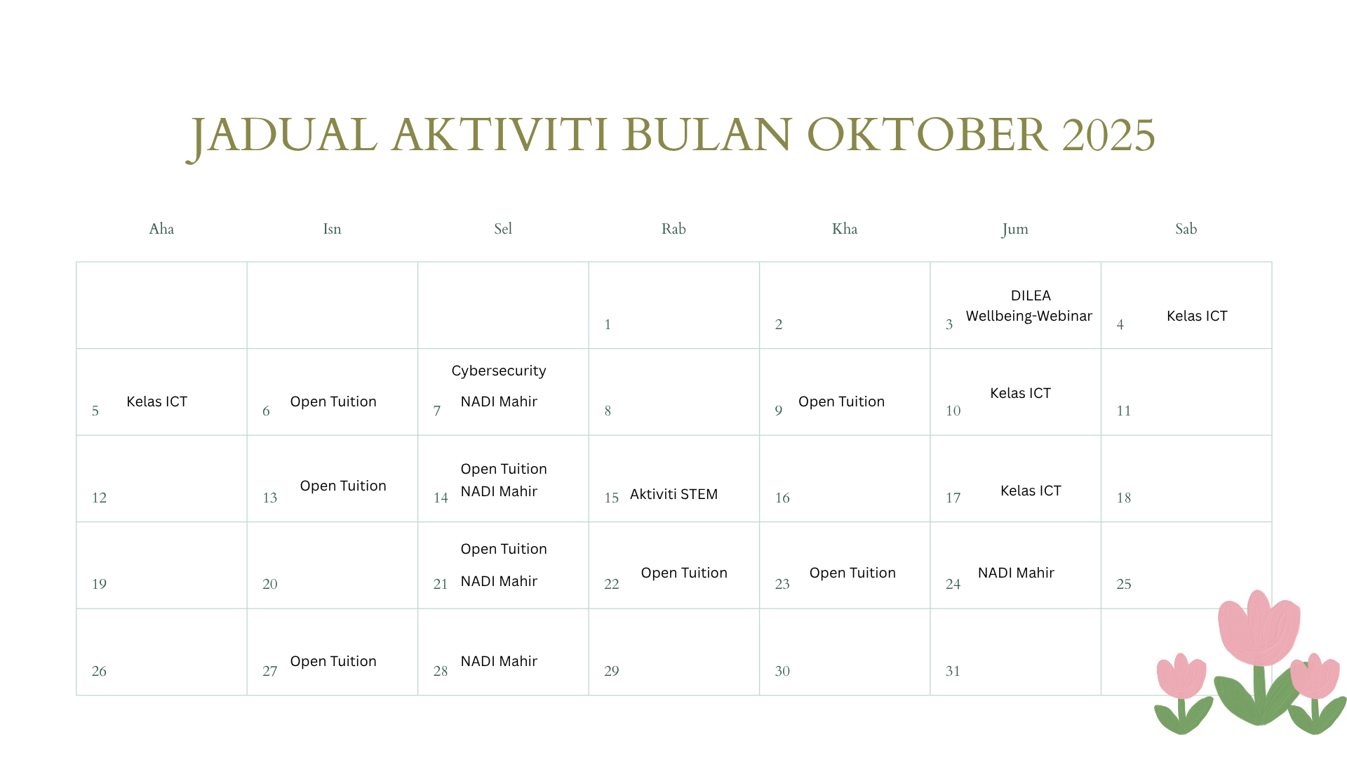 JADUAL AKTIVITI BULAN OKTOBER,2025